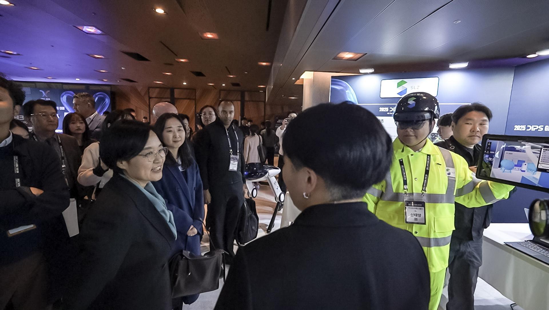 Minister Han Sung-sook personally visited SLZ’s booth and listened attentively as Co-CEO Yumi Lee presented the company’s AI and AR convergence technologies. Expressing strong interest in SLZ’s innovation, the Minister remarked, “The construction sites of the future will transform in ways beyond our imagination,” and encouraged the company to continue contributing to the advancement of Korea’s smart construction industry.