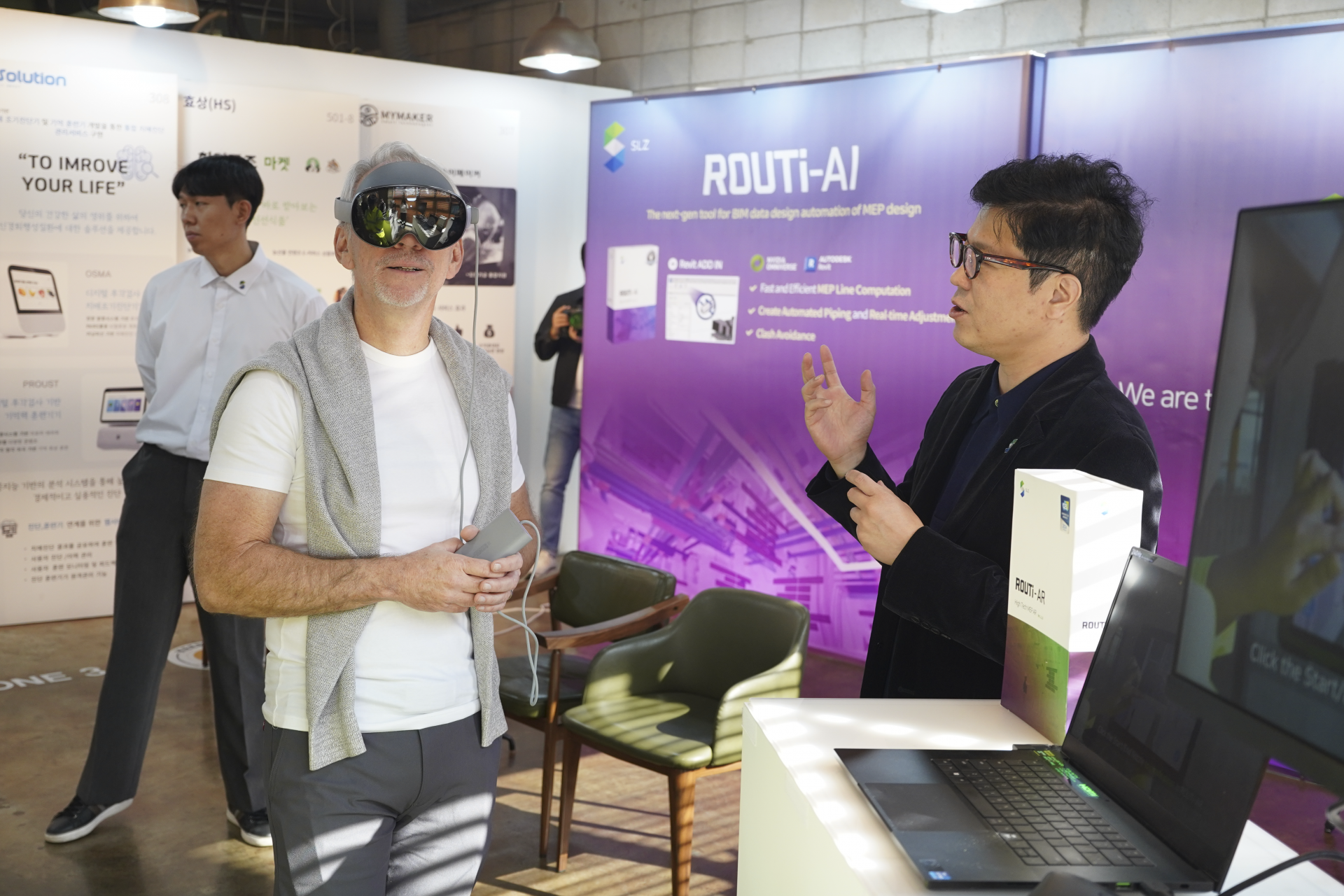SLZ, an AI and AR-based smart construction technology company, hosted a special lecture and product demonstration focusing on AR/AI-based smart construction at its R&D center on November 13th. The event featured Dr. Bernard Kress, a renowned expert in XR (Extended Reality) optics and Director of XR at Google, who is known for his work on Google Glass and Microsoft HoloLens.